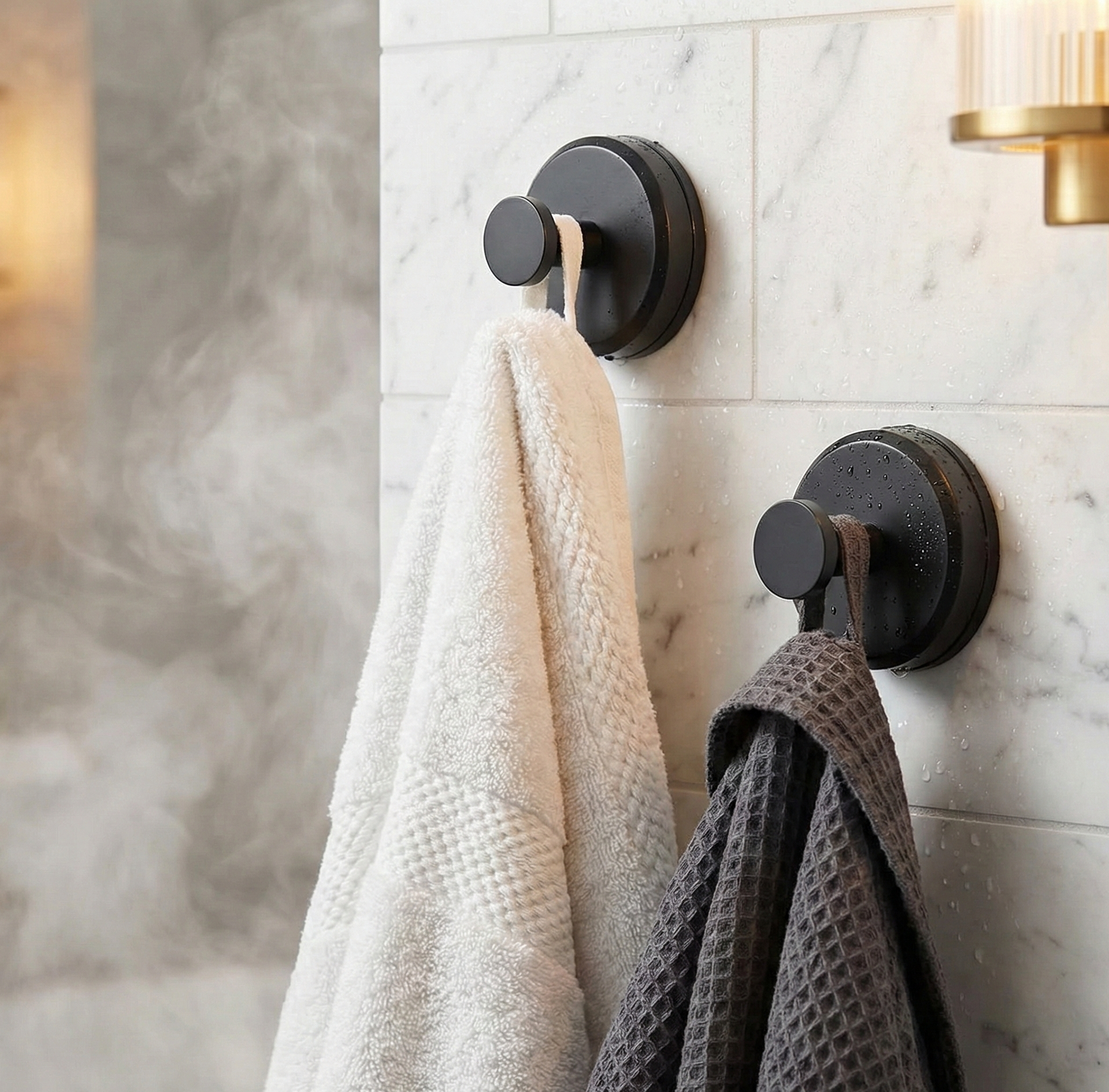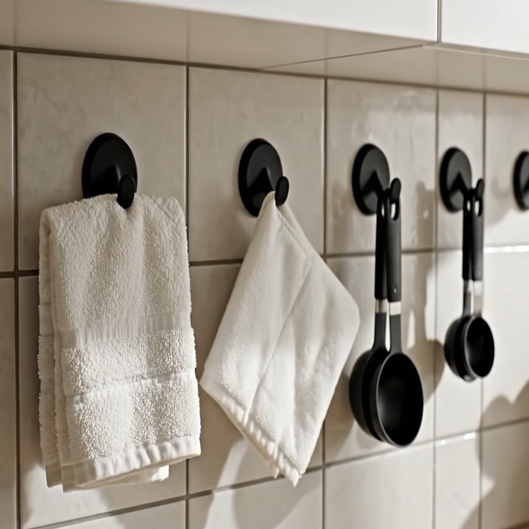 Sugkoppsdesignen skapar ett kraftigt vakuum mot underlaget. Det gör att krokarna sitter stadigt även i fuktiga miljöer som badrum och dusch. Perfekt för handdukar, badrockar, köksredskap och duschtillbehör.